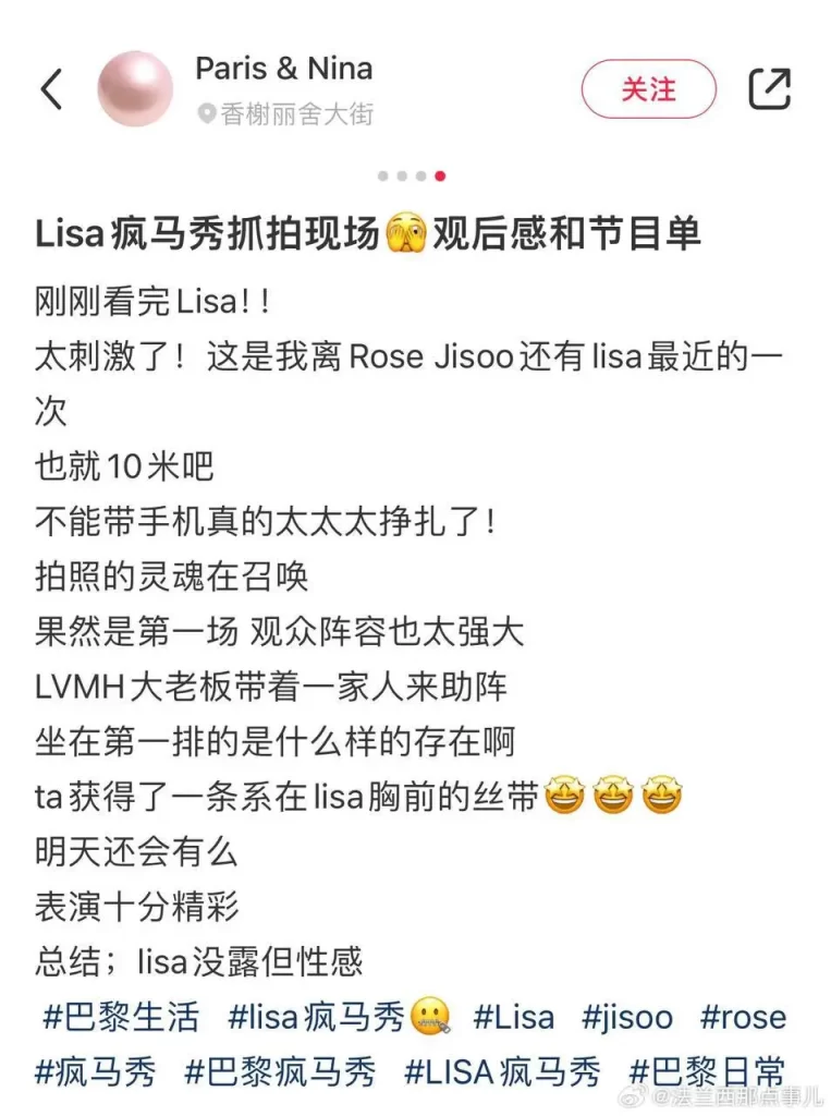 lisa进入会场正式进行表演,因表演为封闭性质管理严格,没有直播也无法带进去相机。